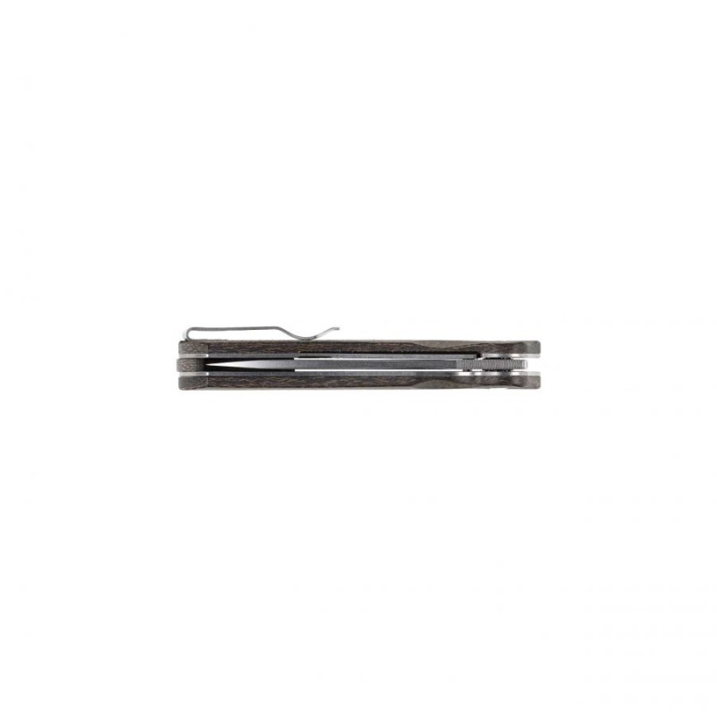 Składany nóż został wyposażony w klips ułatwiający przenoszenie noża zamocowanego o krawędź kieszeni w spodniach.