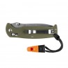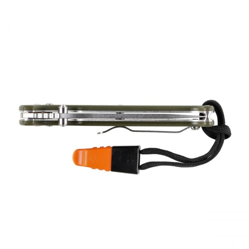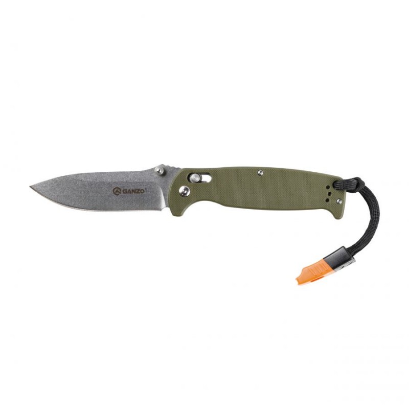 Ganzo G7412-GR-WS z gwizdkiem to poręczny nóż składany, w którym zastosowano głownię ze stali nierdzewnej 440C, sprawdzoną blokadą G-lock, obustronny kołek umożliwiający błyskawiczne rozłożenie ostrza jedną ręką oraz smyczkę z gwizdkiem sygnalizacyjnym.
