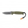 Zastosowana stal 440C o hartowaniu 58-60 HRC jest wysoce odporna na korozję, ma dobrą retencją (zdolność do trzymania ostrości), jest odporna na zużycie i łatwo i szybko się ostrzy. Dzięki takim właściwościom nóż ze stal 440C będzie idealnym wyborem dla początkujących pasjonatów outdooru oraz osób, które nie chcą tracić czasu na długotrwałe i żmudne ostrzenia noża ze stali klasy premium. Mocny sztych (czubek) oraz wysoki szlif płaski zapewniają dobrą penetrację, wytrzymałość ostrza oraz dobre właściwości tnące. Klinga ma matowe wykończenie stonewashed (kąpiel w kamieniach ściernych), które skutecznie maskuje drobne zarysowanie lub wytarcia głowni powstałe podczas użytkowania. Karbowany grzbiet klingi u nasady jest nieznacznie wyższy, tworząc w ten sposób wygodny punkt do oparcia dla kciuka.