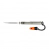 Za wygodne operowanie nożem w głównej mierze odpowiada rękojeść. Ganzo G7412-GR-WS ma profilowane okładziny z tworzywa G-10 mocowane do stalowych wkładek szkieletu śrubami torx. Szorstka tekstura tworzywa oraz ergonomiczny profil rękojeści, sprawiają, że nóż pewnie i wygodnie leży również w mokrej lub zmarzniętej dłoni. Wygodne przenoszenie noża w kieszeni, na pasku lub przy plecaku zapewnia sprężysty stalowy klips (tip up) z opcją przełożenia na lewą stronę. Outdoorowy charakter noża podkreśla smyczka z paracordu wzbogacona gwizdkiem sygnalizacyjnym o dużej głośności.