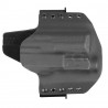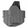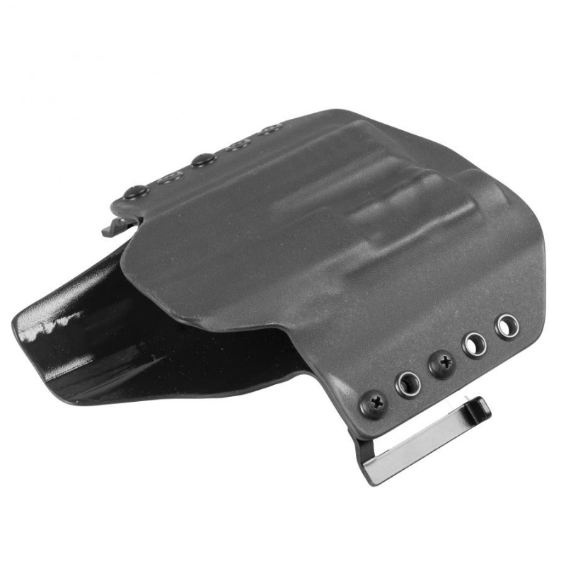 Omawiany model charakteryzuje się konstrukcją typu OWB (Over Waist Band) przeznaczoną do noszenia na zewnętrznej stronie pasa. Kabura tego typu gwarantuje wysoki komfort przenoszenia oraz możliwość szybkiego dobycia. W przypadku chęci wykorzystania w roli kabury EDC konstrukcja skutecznie dociska broń do naszego ciała, pozwalając na dyskretne przenoszenie jej pod obszerną koszulą, marynarką lub kurtką. Kabura OWB doskonale sprawdzi się również w taktycznych lub sportowych konfiguracjach pasa strzeleckiego - skorzystamy z niej zatem zarówno na strzelnicy, jak i w codziennym użytkowaniu. Zwielokrotnione porty montażu szlufek pozwolą nam na ustalenie pionowej pozycji kabury.