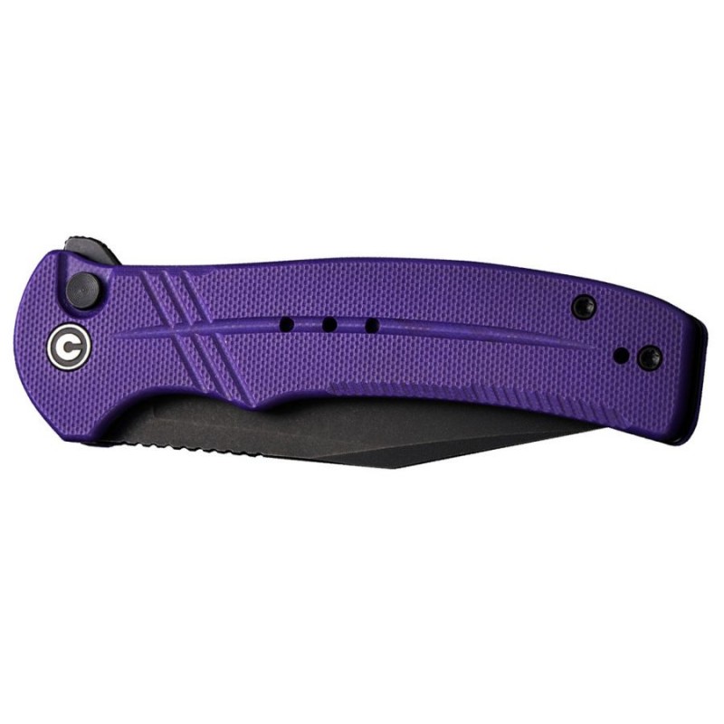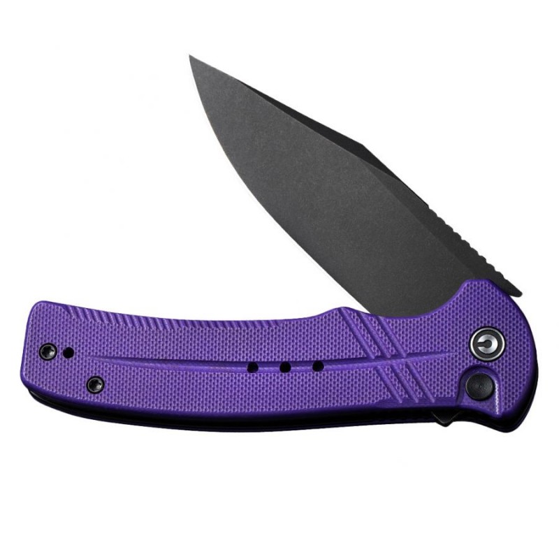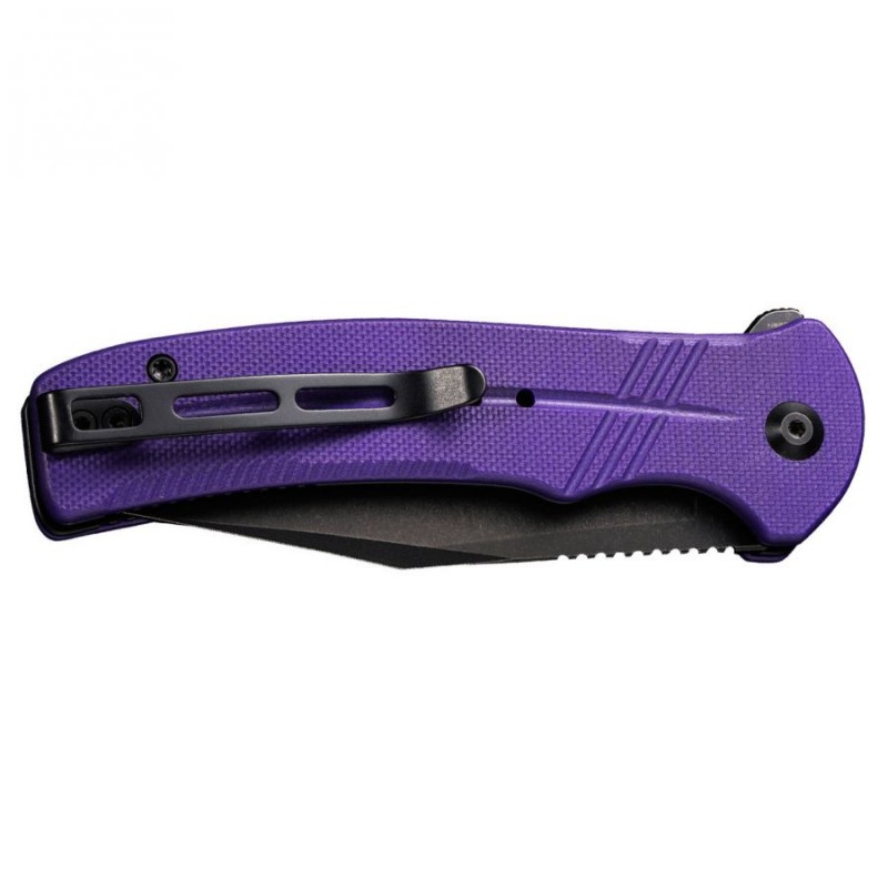 Okładziny rękojeści wykonano z purpurowego G10 – kompozytu z włókna szklanego i syntetycznej żywicy, lekkiego i niepodatnego na uszkodzenia mechaniczne. Wygładzone krawędzie okładzin poprawiają pewność uchwytu i sprawiają, że nóż dobrze leży w dłoni.
