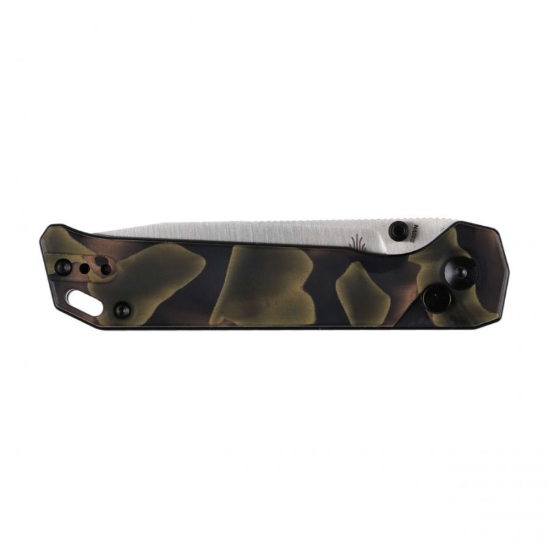 Głownia o uniwersalnym profilu Drop Point powstała ze stali nierdzewnej klasy premium S35VN o wysokiej odporności na korozję i długo utrzymującej ostrość. Satynowe ostrze jest odporne na zużycie i korozję oraz długo utrzymującej ostrość roboczą i stosunkowo łatwo da się naostrzyć.