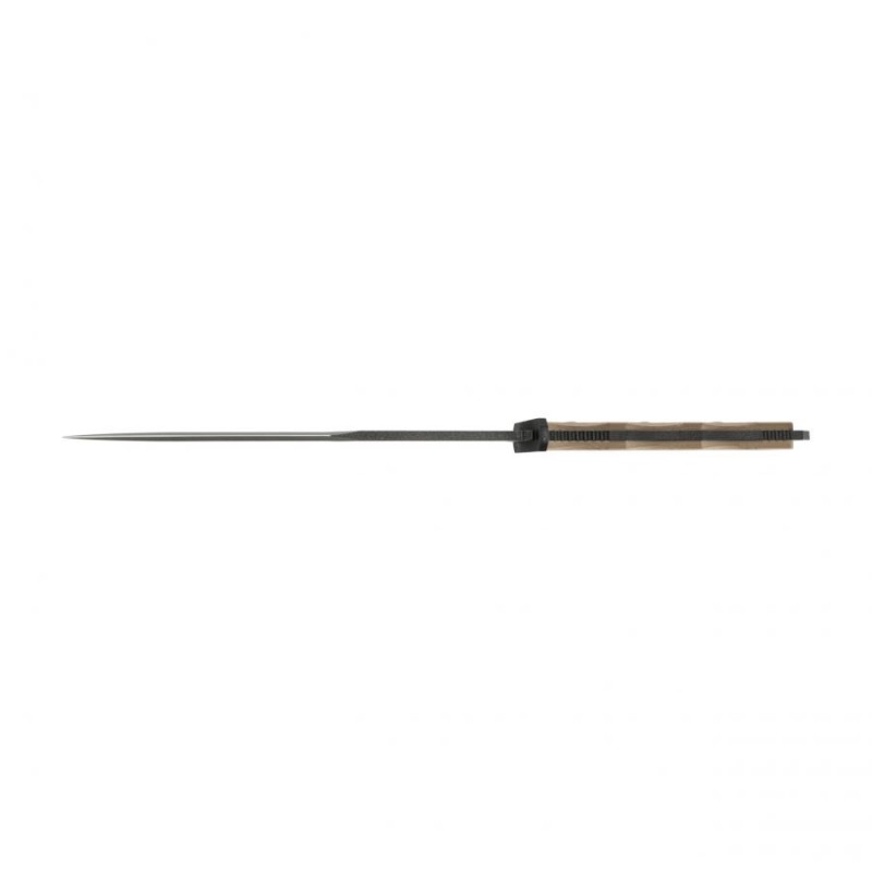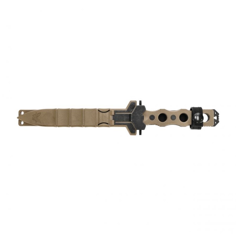 Nóż ma profilowaną rękojeść o szkieletowej konstrukcji z odsłoniętym trzpieniem, który może służyć do zadawania ciosów. Polimerowe okładziny formowane metodą wtryskowa, zamocowano do trzpienia 3 stalowymi śrubami. Drobne teksturowanie zapewnia wspaniałą przyczepność noża i zapobiega wyślizgiwaniu się z noża. W komplecie znajduje się pochewka z kydexu, którą można mocować przy pasie lub oporządzenia. Przed wysunięciem lub zgubieniem bagnetu chroni zapięcie na metalową napę.