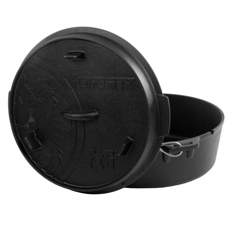 Kociołki żeliwne Petromax z płaskim dnem wspaniale urozmaicą naszą kuchnię, ponieważ pozwalają na gotowanie potraw w sosie własnym nad otwartym ogniem na grillu, w piekarniku, a także na wszystkich rodzajach kuchenek (również indukcyjnych). Dzięki wstępnie wytrawionej powierzchni garnek żeliwny Petromax może być używany od razu po zakupie. Co ważne w razie potrzeby pokrywkę kociołka można wykorzystać jako półmisek lub patelnię.