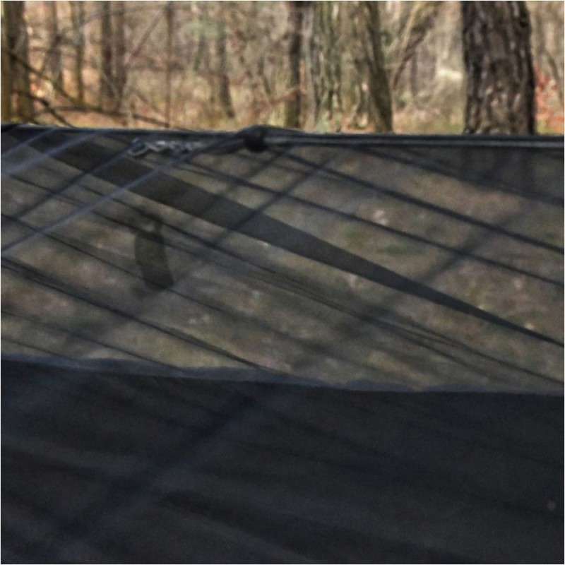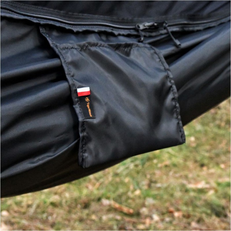 Hamak TigerWood Ważka V1 został wykonany na bazie nylonowej tkaniny łączącej w sobie wszystkie cechy, których oczekujemy podczas nocowania w terenie. Materiał charakteryzuje się wysoką odpornością na rozciąganie, dzięki czemu bez problemu utrzyma ciężar do 230 kg. Charakteryzuje się przy tym niską masą oraz dobrą oddychalnością, dzięki czemu będzie komfortowy zarówno w transporcie jak i podczas użytkowania. Umieszczona na boku hamaka kieszonka umożliwi przechowanie pod ręką kluczowych akcesoriów. Zintegrowana moskitiera została natomiast wyposażona w cięciwy, które pozwalają na jej odpowiednie napięcie dla komfortu użytkownika.