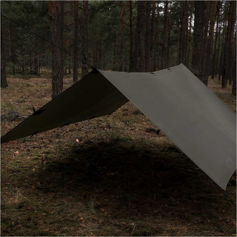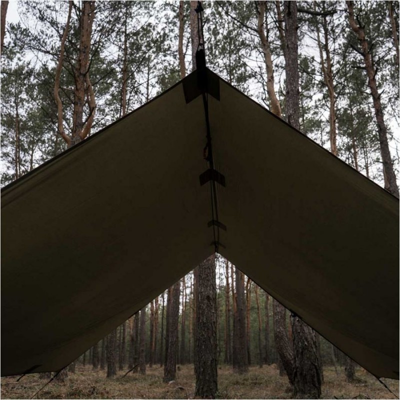 Możliwości, jakie zapewnia tarp są dosłownie niezliczone – od możliwości stworzenia prostego zadaszenia chroniącego przed deszczem, przez obszerne konstrukcje gwarantujące nam wygodę przebywania w ich wnętrzu po aerodynamiczne norki doskonale zabezpieczające przed trudnymi warunkami atmosferycznymi. Istotną zaletą tego typu schronienia jest również brak konieczności noszenia kompatybilnego stelażu. W jego roli doskonale posłużą kijki trekkingowe, znalezione w lesie gałęzie lub nawet same linki naciągowe. Każdy tarp TigerWood posiada wzmocnienia punktów odciągu oraz podklejone szwy, dzięki czemu gwarantuje zwiększoną trwałość oraz odporność na intensywne podmuchy wiatru.
