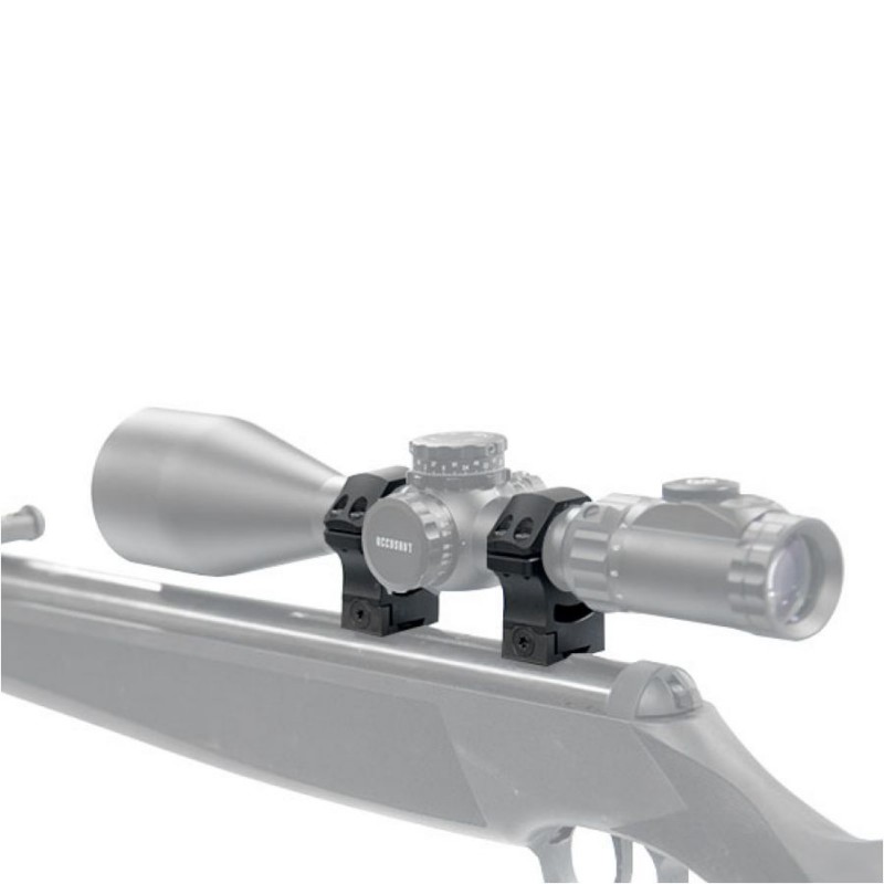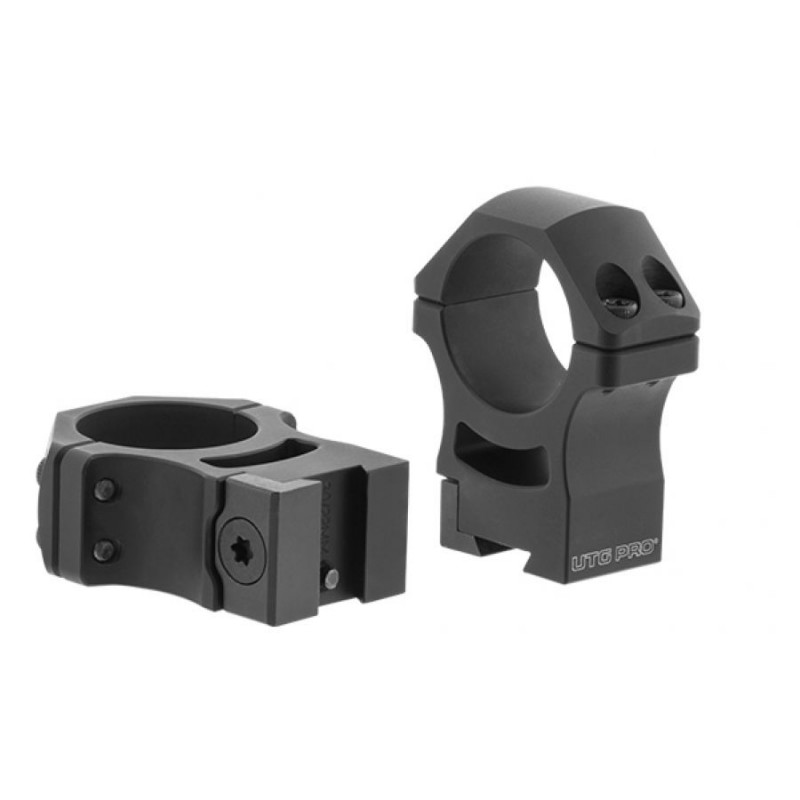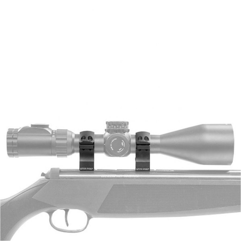 Montaż stalowy UTG POI, dwuczęściowy wysoki do mocowania optyki o tubusie 30 mm na szynie 11 mm.