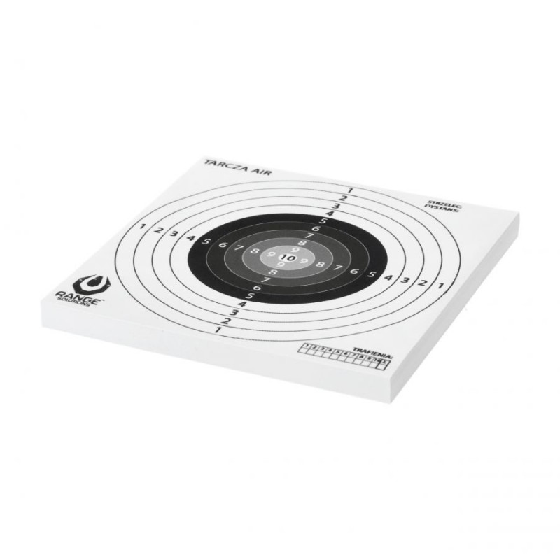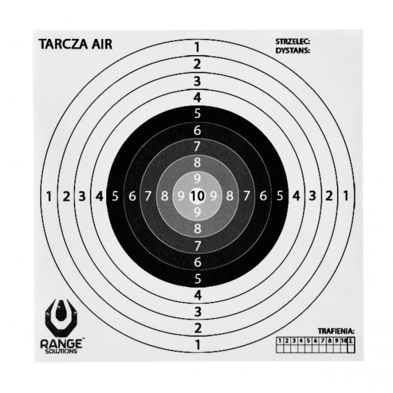 Tarcze do wiatrówki Range Solutions AIR wykonano z wysokiej jakości papieru offset 80 g. Zapewnia to optymalną widoczność punktów uderzenia i łatwe usuwanie śladów po kulach. Czarno-biała kolorystyka zapewnia wyraźny kontrast, ułatwiając identyfikację trafień.