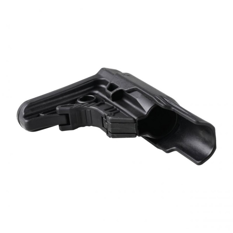 Kolba została stworzona z wysokowytrzymałościowego polimeru, który zapewnia odporność na zadrapania, uderzenia oraz zmienne warunki temperaturowe. Wyposażona w komfortową poduszkę gwarantuje stabilne podparcie policzka podczas celowania, co znacząco poprawia komfort użytkowania. Dzięki swojej kompaktowej konstrukcji idealnie sprawdza się w karabinkach krótkolufowych, lekkich setupach i PDW.