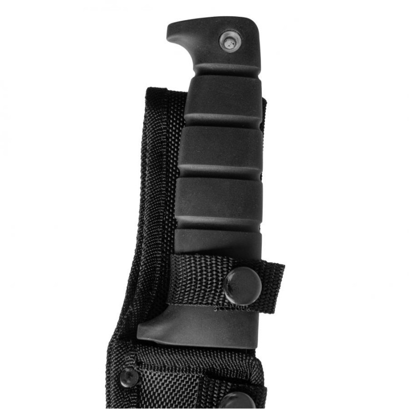W zakończeniu rękojeści znajduje się otwór przeznaczony na rzemień lub linkę zabezpieczającą. Do bezpiecznego przenoszenia maczety przy pasie służy nylonowa pochewka zapinana na napę. Zastosowany nylon balistyczny to materiał odporny na wilgoć, pleśń oraz uszkodzenia mechaniczne.