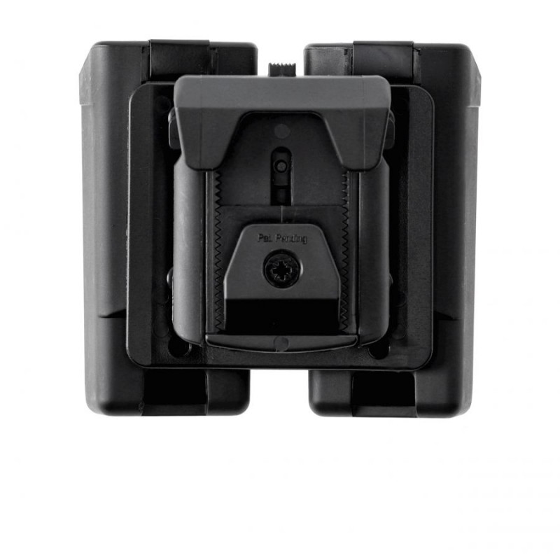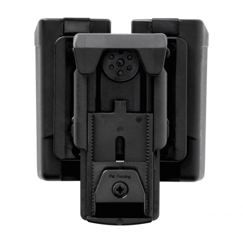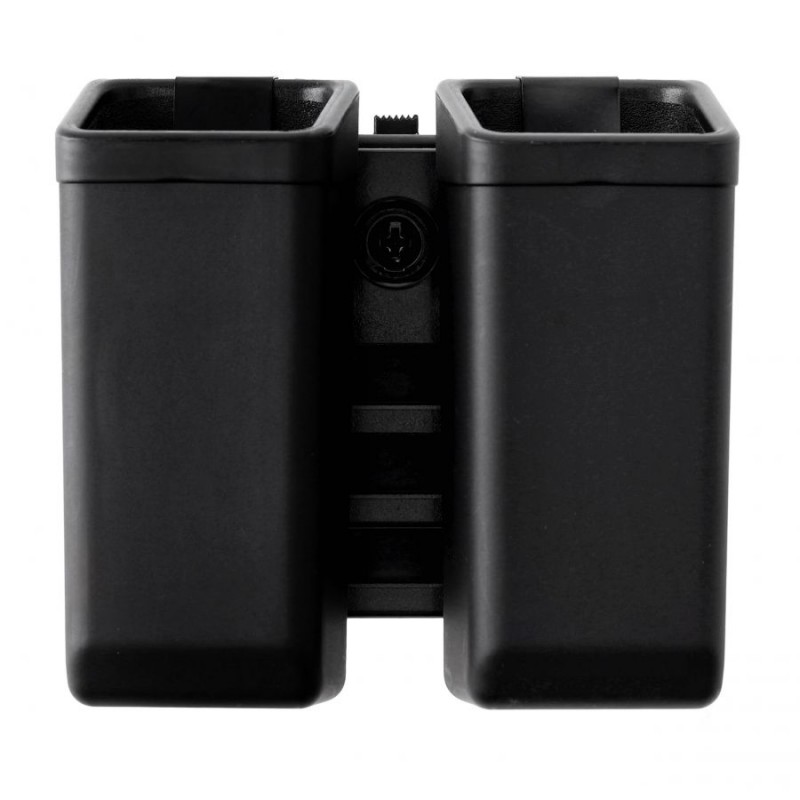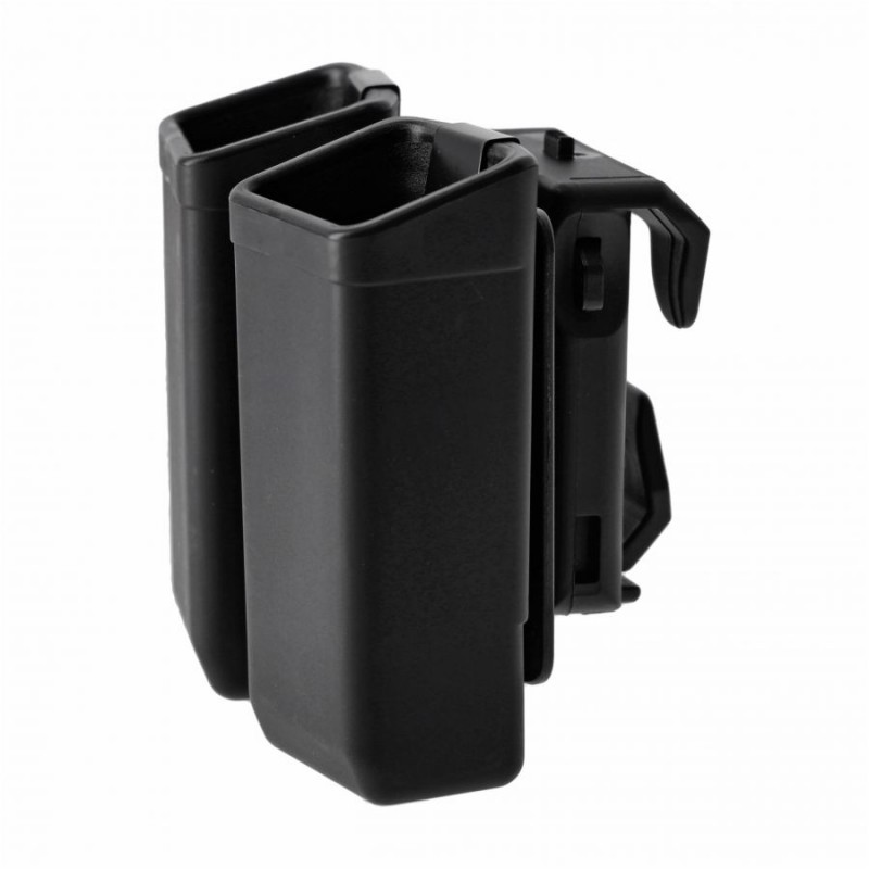 Podwójna ładownica na magazynki pistoletowe kalibru 9 mm, wykonana z trwałego polimeru. Otwarta konstrukcja zapewnia szybki dostęp do magazynków, a wewnętrzna sprężyna skutecznie zapobiega ich wypadnięciu. Model jest również kompatybilny z magazynkami pistoletowymi kalibru .40.