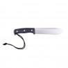 Głownia o kształcie Drop-Point została wykonana ze stali nierdzewnej Bohler N695 dobrze trzymającej ostrość, odpornej na korozję i obciążenia mechaniczne stali nierdzewnej. Na grzbiecie głowni znajduje się karbowanie, zwane jimpingiem, umożliwiające pewne oparcie kciuka podczas wymagających precyzji prac. Rękojeść noża została ergonomicznie wyprofilowana, zapewniając pewny i bezpieczny chwyt w różnych warunkach. Wykonane z mikarty okładziny przymocowano do trzpienia aluminiowymi nitami. Na końcu rękojeści znajduje się otwór umożliwiający przymocowanie linki.