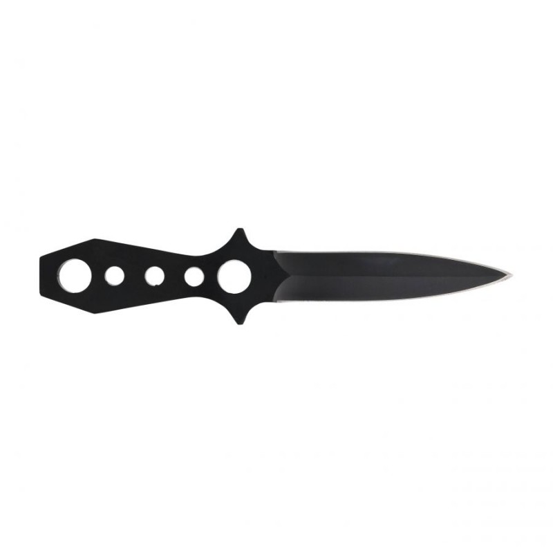 Nóż do rzucania Fox Outdoor w kolorze czarnym to rzutka o konstrukcji Full-Tang. Narzędzie to idealnie sprawdzi się do ćwiczenia celności przy rzucaniu do celu oraz jako niewielki i poręczny nożyk o zastosowaniu bushcraftowo-survivalowym. Nóż jest bardzo dobrze wyważony i wykonano go z jednego kawałka stali. Ostrze jest obustronne i zakończone wydatnym szpicem, umożliwiającym przebicie się przez więkoszość materiałów. Cechą charakterystyczną jest bardzo cienki profil noża, co ułatwia jego przechowywanie. Rękojeść ma konstrukcję ażurową, a samo narzędzie bardzo dobre wyważenie. W zestawie znajduje się nylonowa kabura z zapięciem na rzep.