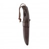 Do bezpiecznego noszenia noża na pasie służy polimerowa pochewka z blokadą na tzw. wcisk. Wyposażono ją w klips mocujący, a w spodniej części wywiercono otwór odprowadzający wodę.