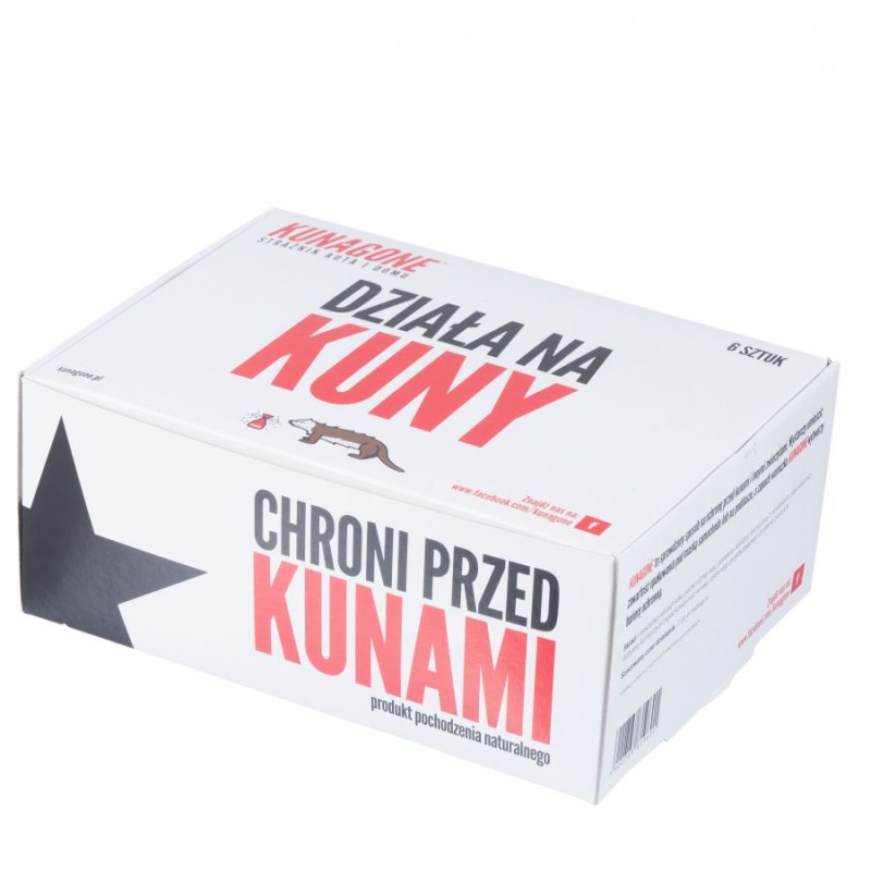 Naturalny odstraszacz Kunagone na kuny 6-pak to skuteczny środek, który chroni nasz pojazd i dom przed szkodami wyrządzanymi przez kuny i inne gryzonie.