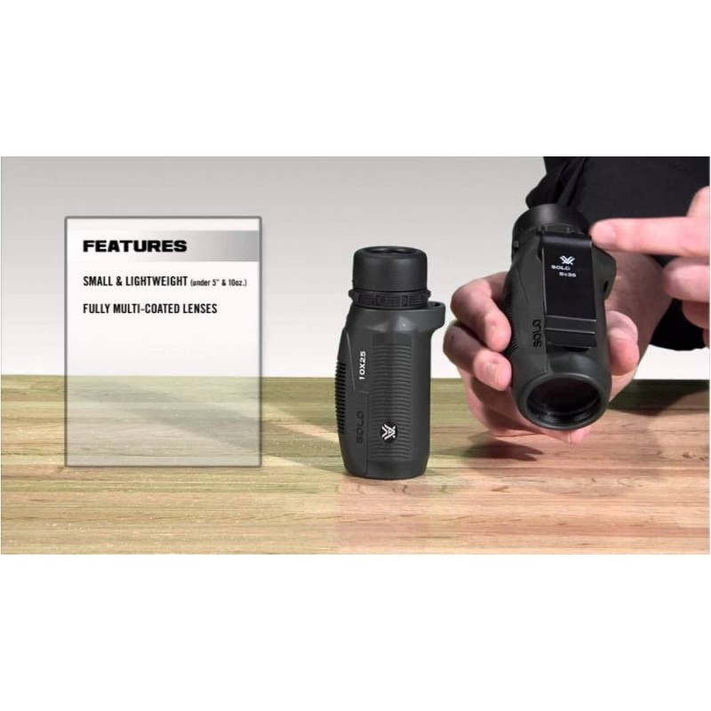 Monokular Solo 10×25 i jego wysokiej jakości optykę zawsze możesz mieć pod ręką. Ta poręczna, kompaktowa luneta idealnie sprawdzi się dla entuzjastów outdooru, którzy chcą być jeszcze bliżej natury. Wielowarstwowa optyka zapewnia jasność obrazu w kompaktowej, lekkiej i poręcznej formie. Solo jest wodoodporny, odporny na roszenie oraz uderzenia. Monokular nadaje się dla każdego, od strzelców po turystów.