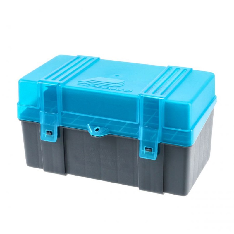 Pudełko Plano 123050 zamykane jest za pomocą pokrywy w niebieskim kolorze ułatwiającym identyfikację. W pokrywie umieszczono otwór o średnicy 4 mm, który umożliwia zamocowanie kłódki zabezpieczającej przed otwarciem.