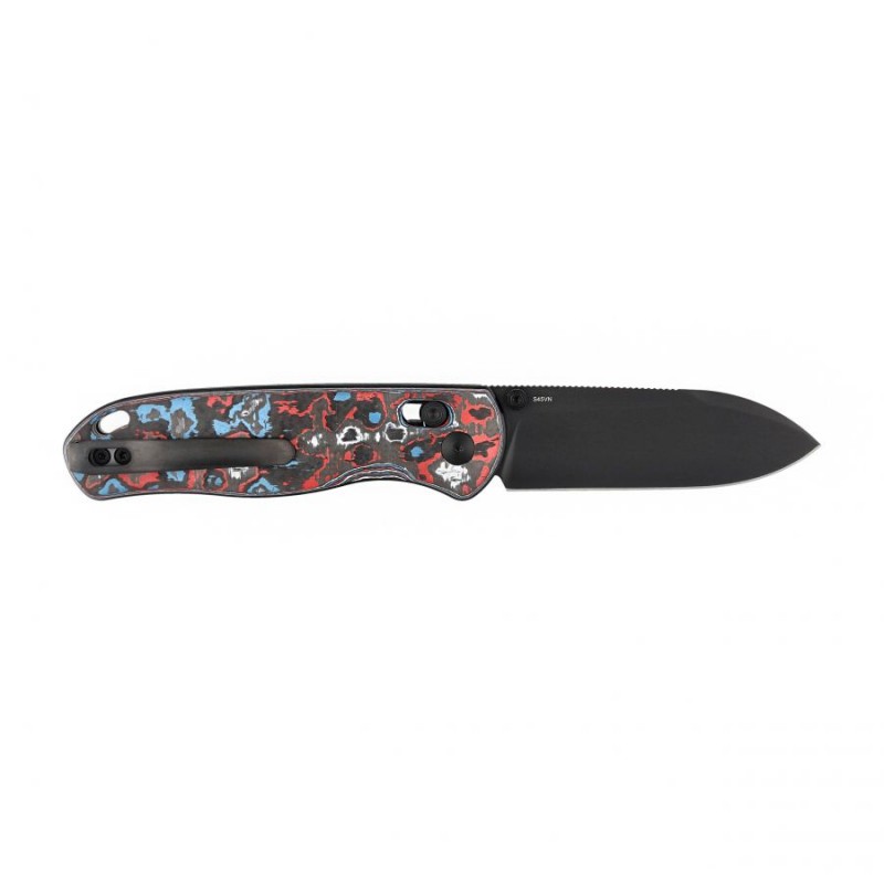 Kizer Drop Bear posiada okładziny FatCarbonn wykonane z włókna węglowego. Rękojeść przyciągają wzrok innych użytkowników swoim artystycznym wyglądem w formie graffiti.