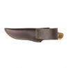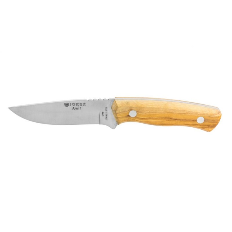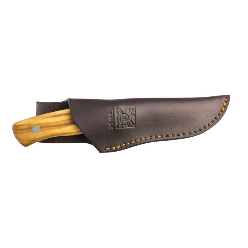 Mamy do zaoferowania fabrycznie nowy, wysokiej jakości nóż hiszpańskiej marki Joker znanej na całym świecie ze swoich doskonałych wyrobów. Jest to uniwersalny, trwały i mocny nóż o ostrzu stałym posiadający klingę wykonaną ze stali nierdzewnej. Przytwierdzone do rękojeści okładziny wykonano z drewna oliwnego. Ergonomiczne profilowanie rękojeści zapewnia pewny i bezpieczny chwyt. Dodatkowo nóż posiada skórzaną pochewkę z grawerem producenta.Całość zapakowana jest w ładne tekturowe pudełko co sprawia, że nóż idealnie nadaje się na prezent.