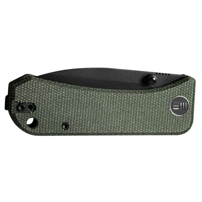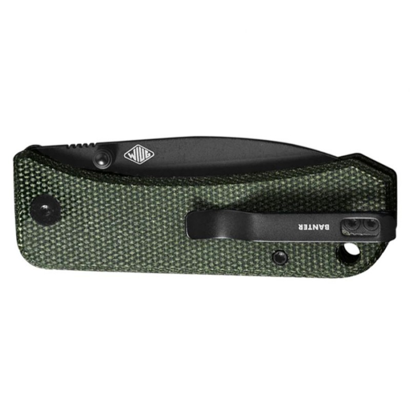 Klingę WE Banter wykuto ze stali CPM-S35VN, zapewniającej znakomitą trwałość i odporność na korozję. Głownię typu Spear Point, zahartowaną do 58-60 HRC, otwieraną za pomocą kołka pod kciuk, wykończono metodą Black Stonewash. Rękojeść wykonano z mikarty i stali. Całość blokuje sprawdzony mechanizm Liner Lock.