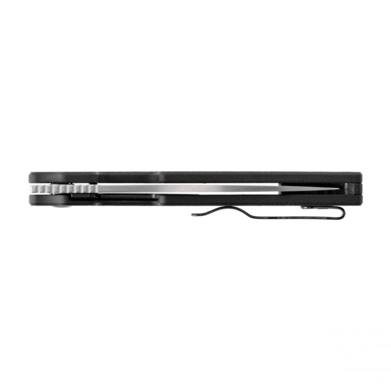 Składany nóż Kizer Drop Varatas wyposażono w wytrzymałe okładziny w kolorze czarnym wykonane z tworzywa G10, które zapewnia pewny chwyt nawet mokrą lub zabrudzoną dłonią. Do okładzin przytwierdzono obustronny klips Deep Carry, dzięki któremu nóż można dyskretnie przenosić w kieszeni spodni.