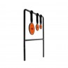Cel wiatrówkowy spinner RazorGun Typ 3 to solidna i wytrzymała tarcza strzelecka zaprojektowana dla strzelców trenujących z wiatrówkami. Konstrukcja składa się z trzech okrągłych, metalowych płyt o różnej średnicy, zawieszonych na poziomej belce, co pozwala na ćwiczenie celności i refleksu na różnych poziomach trudności.