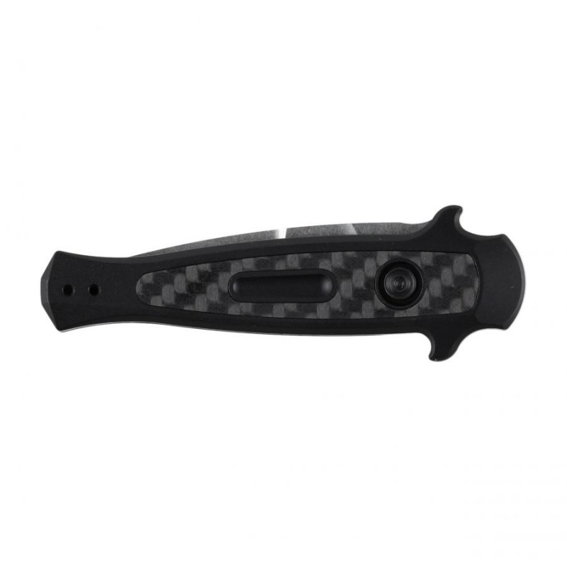 Nóż ma opływowe okładziny z anodowanego aluminium lotniczego 6061-T6, wyposażone w obustronny jelec. Elementem, który nadaje nożowi eleganckiego stylu, jest ozdobna wkładka z włókna węglowego o mieniącej się fakturze.