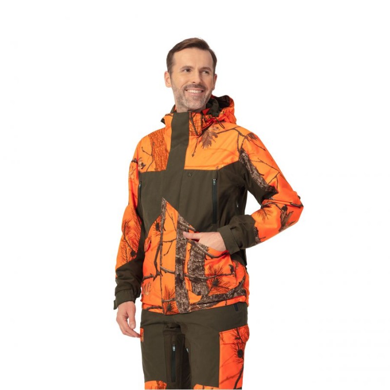 Odpinany kaptur z systemem Flex® został zaprojektowany z myślą o maksymalnej ochronie i funkcjonalności. Można go dopasować do kształtu twarzy za pomocą przednich ściągaczy, a tylną część można regulować, aby odsłonić uszy i ułatwić nasłuchiwanie zwierzyny. Daszek kaptura chroni oczy przed niekorzystnymi warunkami, a całość jest odpinana zamkiem błyskawicznym.