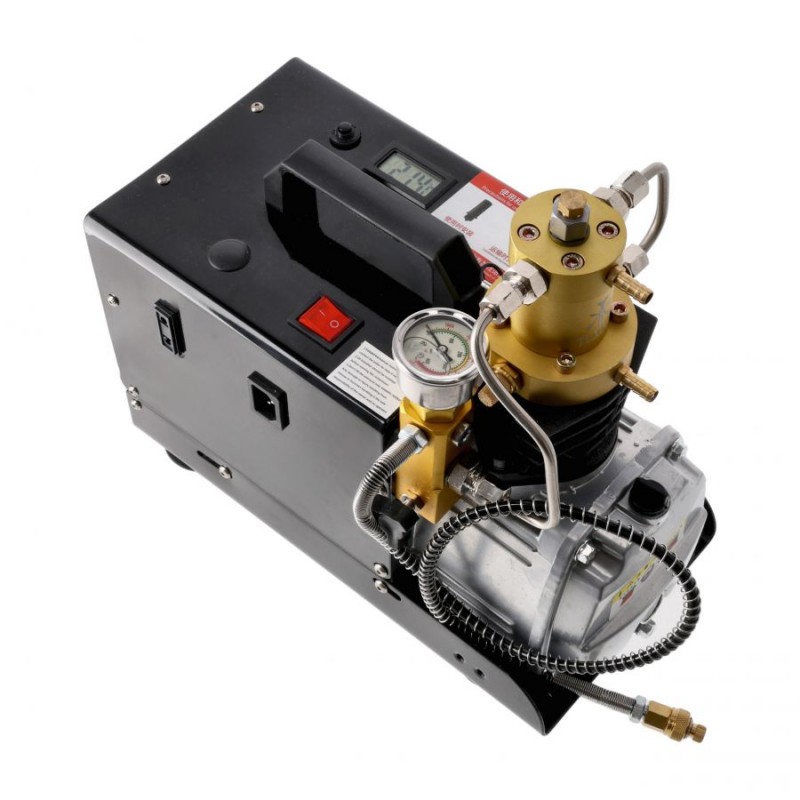 Kompresor jednocylindrowy TXES021 to wydajne i ekonomiczne urządzenie przeznaczone do napełniania karabinków pneumatycznych i butli PCP. Wyposażony w dwustopniowy system kompresji, zapewnia stabilną pracę oraz skuteczne chłodzenie za pomocą wentylatora i systemu wodnego. Posiada precyzyjny manometr, cyfrowy termometr oraz ręczny wyłącznik, umożliwiający kontrolę ciśnienia. Dzięki solidnej, metalowej konstrukcji z plastikową rączką jest wytrzymały i łatwy w przenoszeniu.