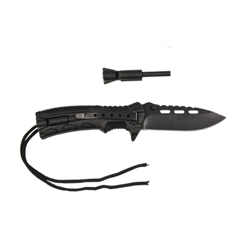 Producent zadbał również o wspomniane już survivalowe dodatki – gwizdek oraz umieszczone w rękojeści niewielkie krzesiwo.