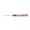 W nożu znajdziemy kilka ozdobnych elementów, w postaci anodowanego na pomarańczowo kołka oraz polerowanych tulei dystansowych w tej samej kolorystyce.