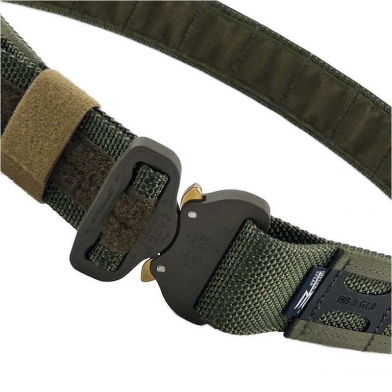 Pas został wyposażony w system PALS/Molle wykonany z termoplastycznego kompozytu, który jest odporny na pęknięcia i rozdarcia. Obszycie lamówką na krawędziach zwiększa trwałość, a odstępy między komórkami systemu PALS są zgodne ze standardem 1 cala, co umożliwia montaż akcesoriów zgodnych z systemem Molle.