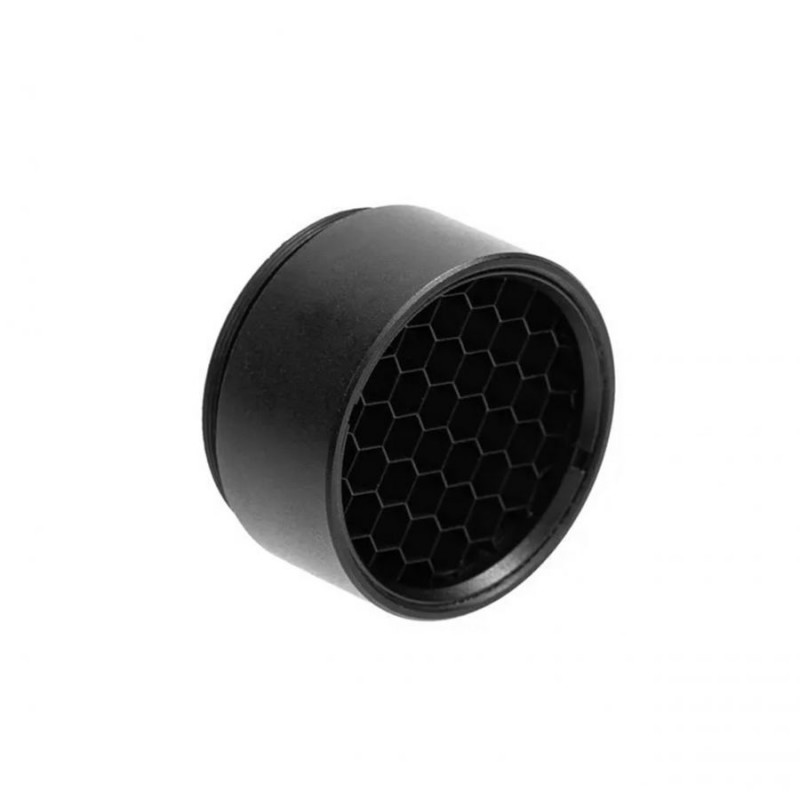 Osłona antyrefleksyjna Primary Arms do lunety GLx 1X MicroPrism to osłona redukująca odbicia świetlne i pełniąca formę dodatkowej ochrony obiektywu przed uszkodzeniem. Wykonana została z anodowanego alumunium w kolorze czarnym i jest nakręcana bezpośrednio na obiektyw. Osłony tego typu były początkowo używane przez snajperów jako element maskowania broni. Jest również niezwykle pomocna w utrzymaniu szkła w czystości, bez brudu i zanieczyszczeń, które mogą porysować soczewkę. Wyeliminowanie odblasku lunety będzie również pomocne podczas polowania, ponieważ jasne odbicia mogą potencjalnie odstraszyć jelenie. Osłona niwelowała odbijanie światła od powierzchni optyki, co skutecznie zapobiegało wykryciu pozycji strzelca.