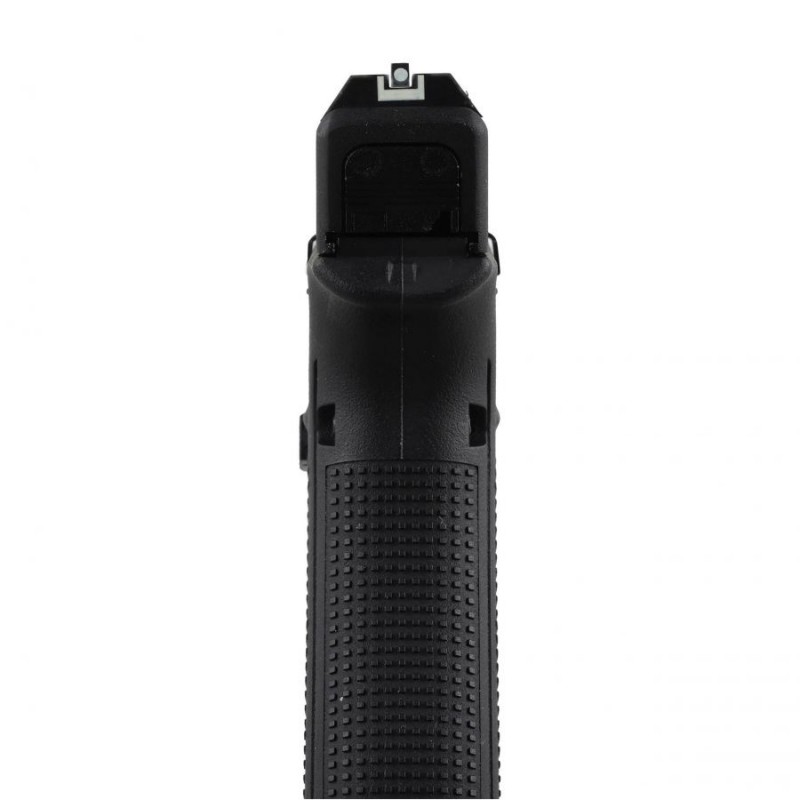 Replika Glock 17 ma lekki polimerowy szkielet i zamek. Na zamku i szkielecie naniesiono licencjonowane oznaczenia firmy Glock oraz numer seryjny pistoletu. Prosty, klasyczny chwyt bez profilowania na palce, zapewnia lepszą kontrolę nad bronią każdemu strzelcowi niezależnie od wielkości dłoni. Ze względu na zastosowany napęd, replika nie ma blowbacku i należy ją ręcznie przeładować po każdym strzale.