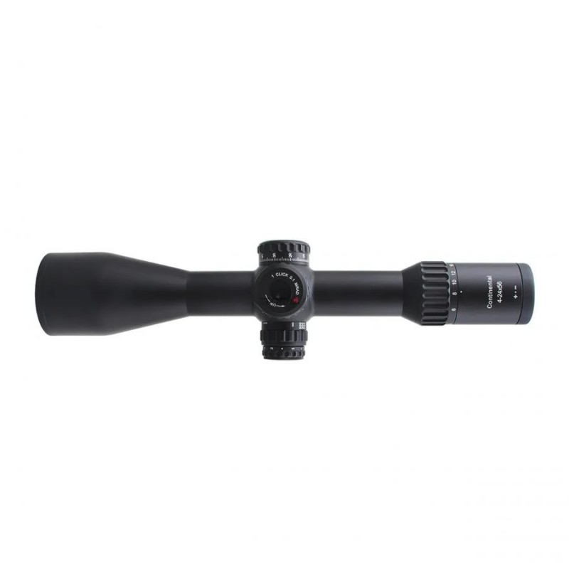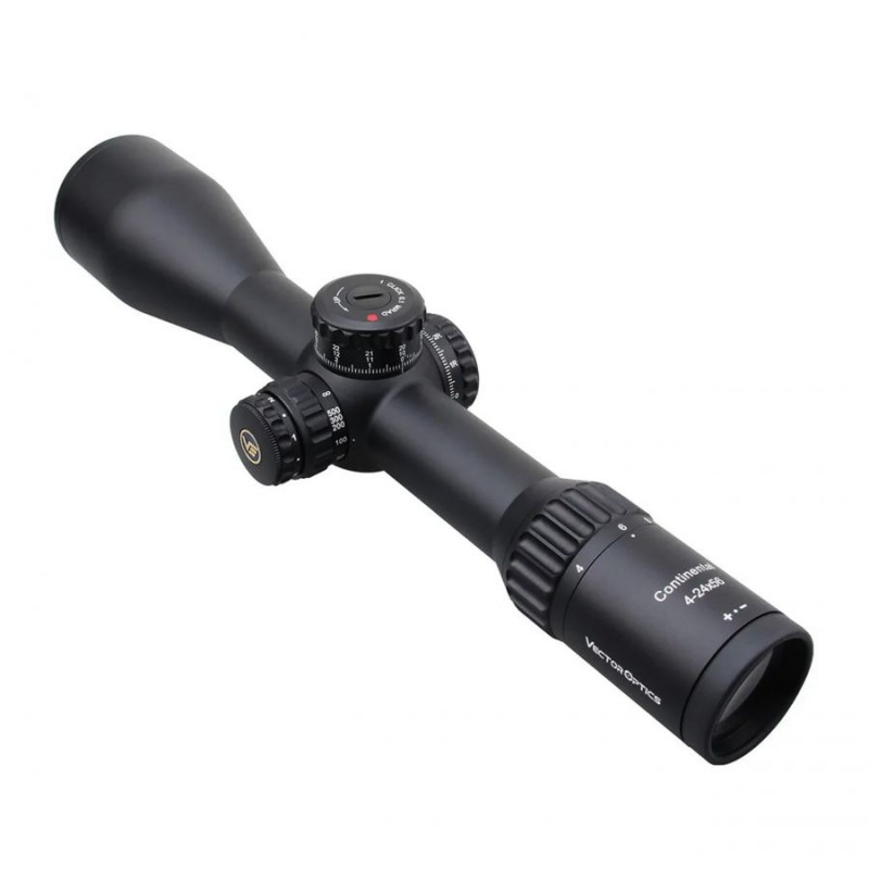 Luneta celownicza Vector Optics Continental x6 4-24 FFP Ranging 56 mm to zaawansowany celownik optyczny idealny do strzelania na średnich dystansach. Wyposażona w zmienne powiększenie w zakresie od 4x do 24x oraz obiektyw o średnicy 56 mm, zapewnia jasny i wyraźny obraz w każdych warunkach oświetleniowych.