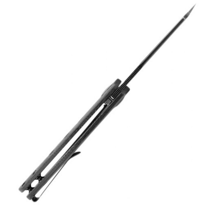 Składany nóż został wyposażony w klips ułatwiający przenoszenie noża zamocowanego o krawędź kieszeni w spodniach.