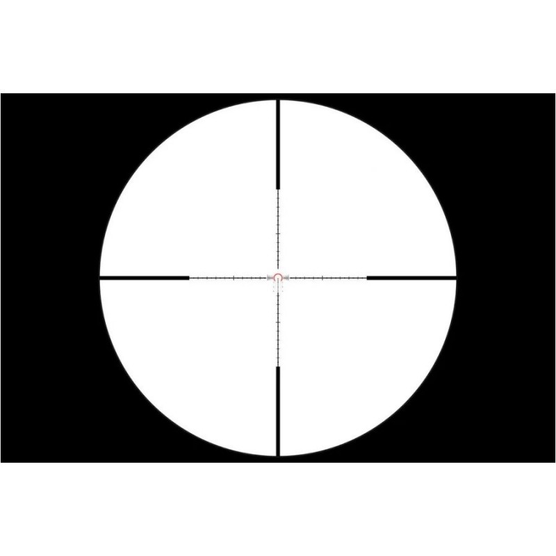 Luneta została wyposażona krzyż umieszczony w pierwszym planie optycznym, co jest optymalnym wyborem do przewidzianych dla niej zastosowań. Rozwiązanie tego typu zachowuje realne proporcje znaku celowniczego podczas zmiany powiększenia, dzięki czemu umożliwia wiarygodną ocenę odległości do celu. Ponadto w przypadku powiększeń z dołu zakresu krzyż pozostaje niewielki, nie rozpraszając nas ilością detali i pozwalając na szybkie przenoszenie pomiędzy celami. Omawiany model oferuje wszechstronny krzyż ACSS Griffin MIL M8 stworzony z myślą o wykorzystaniu w lunetach typu LPVO. Siatka obejmuje centralny szewron otoczony kontrastową, czerwoną podkową znacząco usprawniającą szybkie namierzanie celu na bliskich dystansach oraz, podziałkę wyskalowaną w miliradianach.