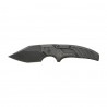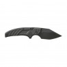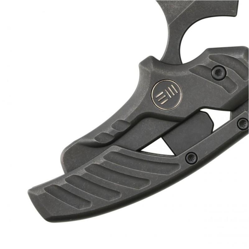 Głownię WE Typhoeus wykuto ze stali CPM-20CV, doskonale trzymającej krawędź i odpornej na korozję. Klingę typu Clip Point zahartowano do 58-60 HRC i wykończono metodą Black Stonewash. Rękojeść wykonano z barwionego na czarno tytanu.