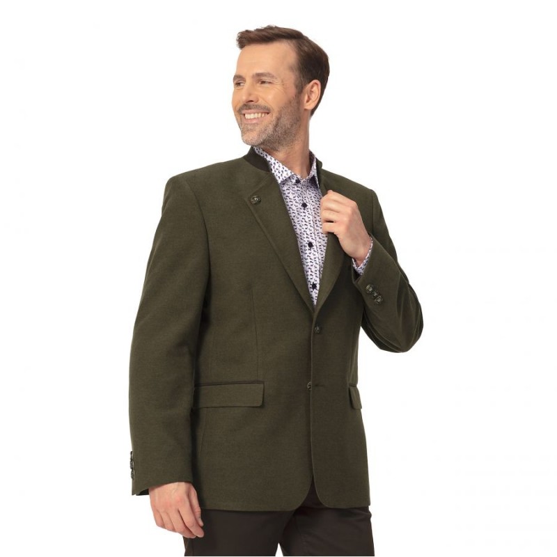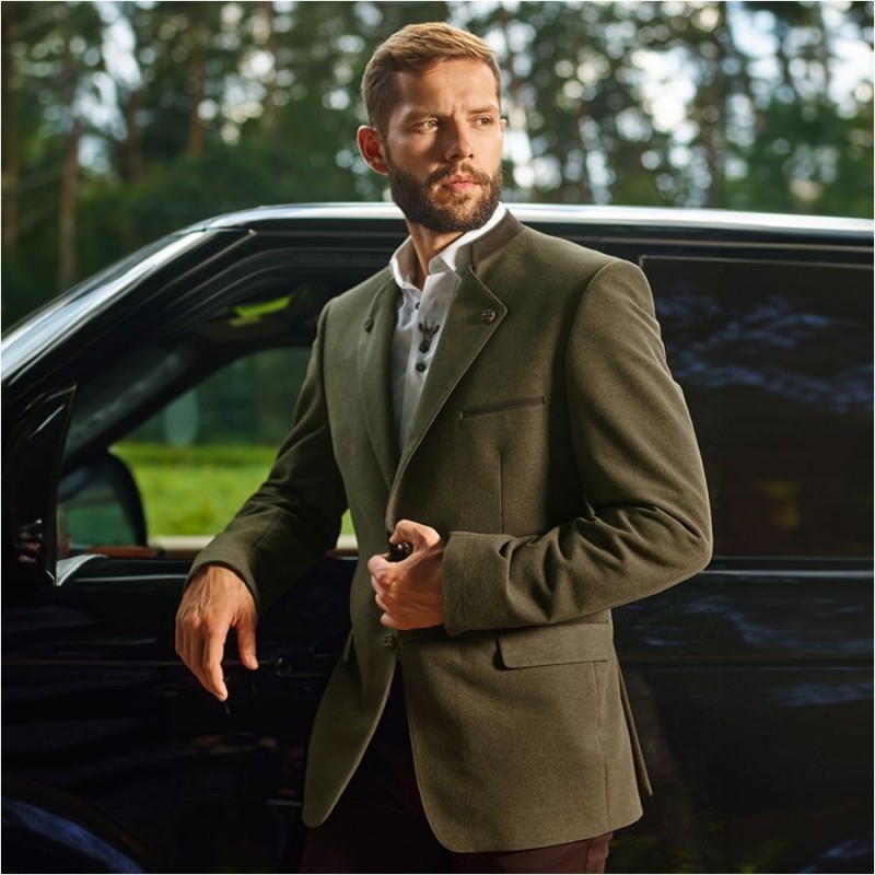 Klasyczny, a zarazem swobodny krój przypadnie do gustu miłośnikom jazdy konnej i myślistwa. Dodatek rayonu zapewnia przewiewność oraz miękkość, co czyni marynarkę wyjątkowo przyjemną w noszeniu. Oliwkowy melanż sprawia, że marynarka jest uniwersalnym elementem garderoby na różne okazje.