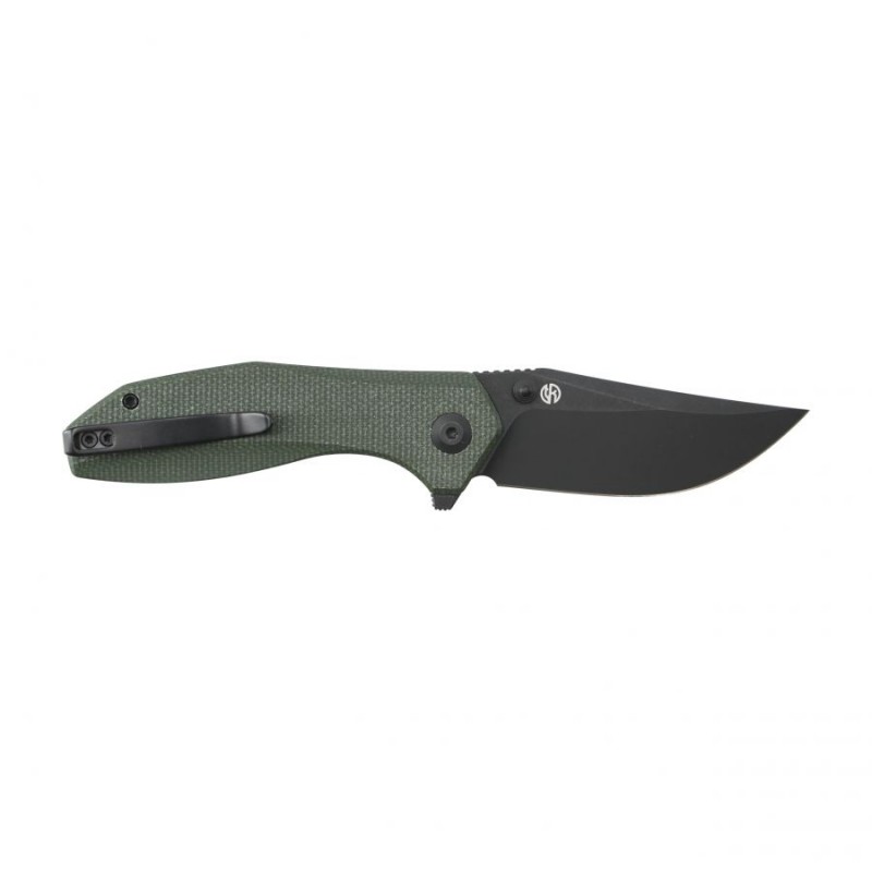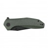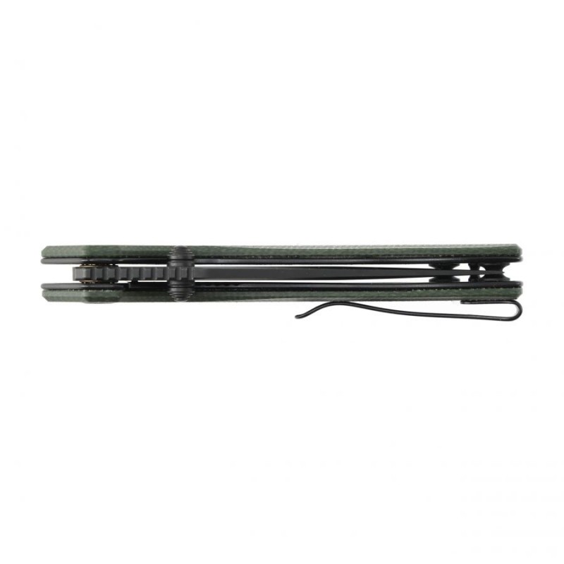 Okładziny rękojeści wykonano z zielonej micarty – kompozytu powstałego z połączenia płótna prasowanego pod ciśnieniem z syntetyczną żywicą, lekkiego i niepodatnego na uszkodzenia mechaniczne. Wygładzone krawędzie okładzin poprawiają pewność uchwytu i sprawiają, że nóż dobrze leży w dłoni.