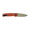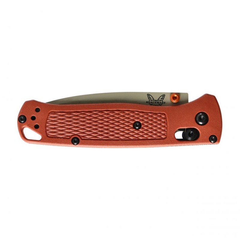 Nóż składany Benchmade 535TN-10 Bugout to jeden z najnowszych przedstawicieli noży marki Benchmade. Model ten jest niezwykle lekki (zaledwie 52 gramy) i wygodny w przenoszeniu, dzięki czemu idealnie sprawdzi się jako nóż EDC. Głownię Drop-point długości 82 mm wykonano ze stali nierdzewnej CPM-S30V o gładkim szlifie. Stylowe wykończenie za pomocą warstwy Cerakote nadało jej charakterystycznego, miłego dla oka wyglądu. Przedstawiona wersja noża ma ryflowane okładziny w kolorze pomarańczowym. Bugout to bardzo lekki i wydajny nóż, stworzony w celu zapewnienia najwyższej wygody i funkcjonalności.