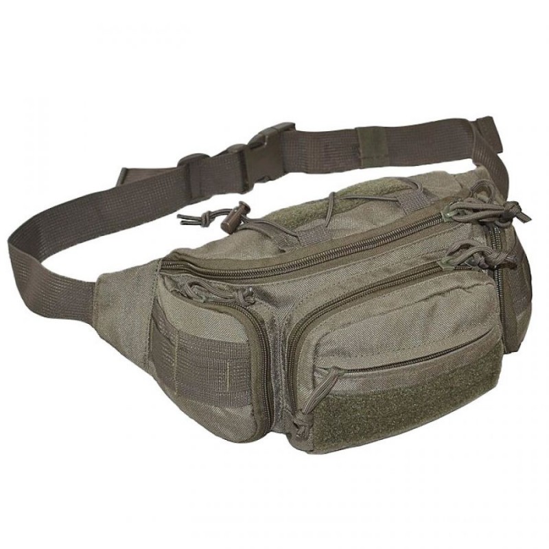 Torba biodrowa typu "nerka" od firmy Texar w kolorze oliwkowym pomieści niezbędne akcesoria i wyposażenie bez konieczności przenoszenia ich torbie czy plecaku.