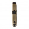 Replika Glock 19X 6 mm coyote CO2 ma metalowy ruchomy zamek oraz polimerowy szkielet w wojskowej kolorystyce coyote.