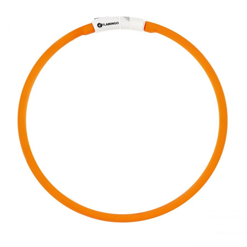 Obroża LED dla psa Flamingo Nera w kolorze pomarańczowym zwiększa bezpieczeństwo naszego pupila w trakcie spaceru.