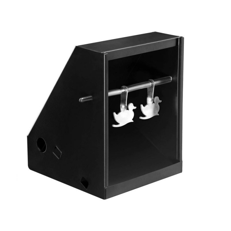 Kulochwyt kaczki Perfecta 17x17 cm chroni przed rykoszetami śrutu BB'S, skutecznie wyłapuje resztki śrutu ołowianego, jest także znacznie wytrzymalszy od standardowego kulochwytu o prostokątnym kształcie. W zestawie 4 wymienne cele metalowe i 10 tarcz papierowych.