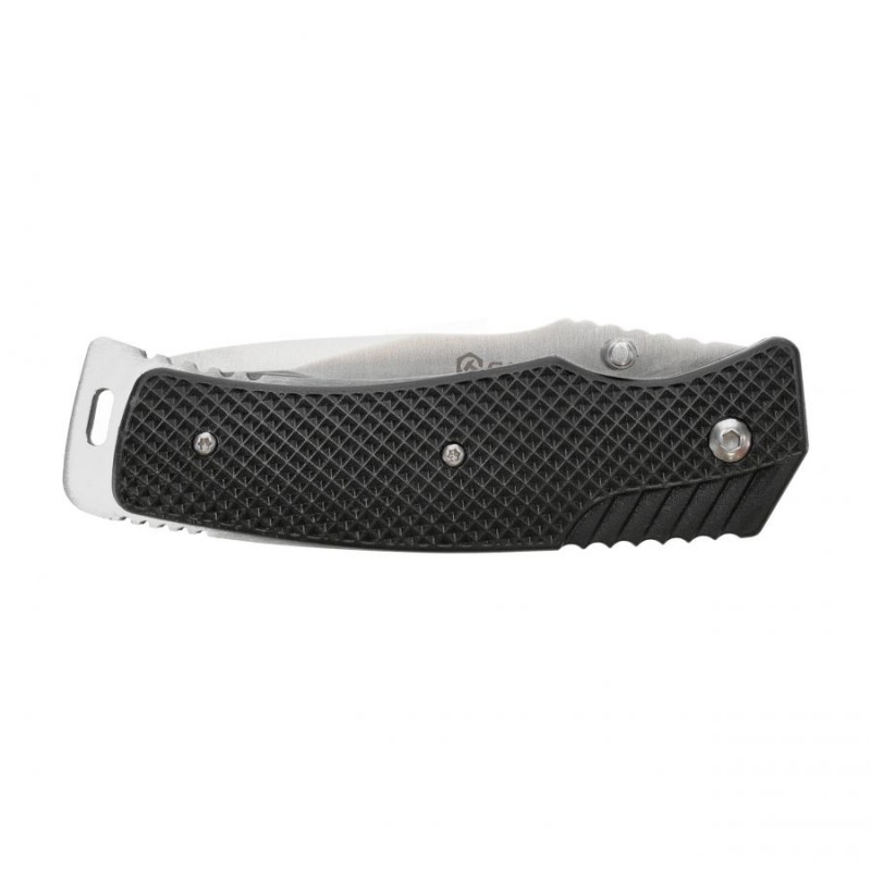 Ergonomiczna rękojesć wykonana jest ze stalowych przekładek do których przytwierdzono teksturowane okładziny wykonane z tworzywa sztucznego. Ną rękojeści producent umieścił funkcjonalny klips, umożliwiający bezpieczne przenoszenie noża.