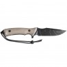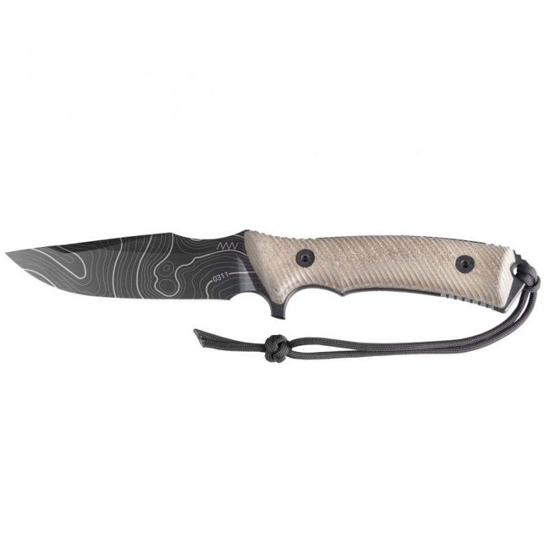 Okładziny noża w kolorze oliwkowym powstały z bardzo trwałego i odpornego na warunki atmosferyczne tworzywa Micarta, które zostało poddane obróbce 3D. Dzięki swojemu kształtowi i żłobieniom nóż pewnie leży w dłoni i zapewnia bezpieczny chwyt w każdej sytuacji. W tylnej części rękojeści noża znajduje się otwór umożliwiający przewleczenie linki z paracordu lub smyczy zabezpieczającej.