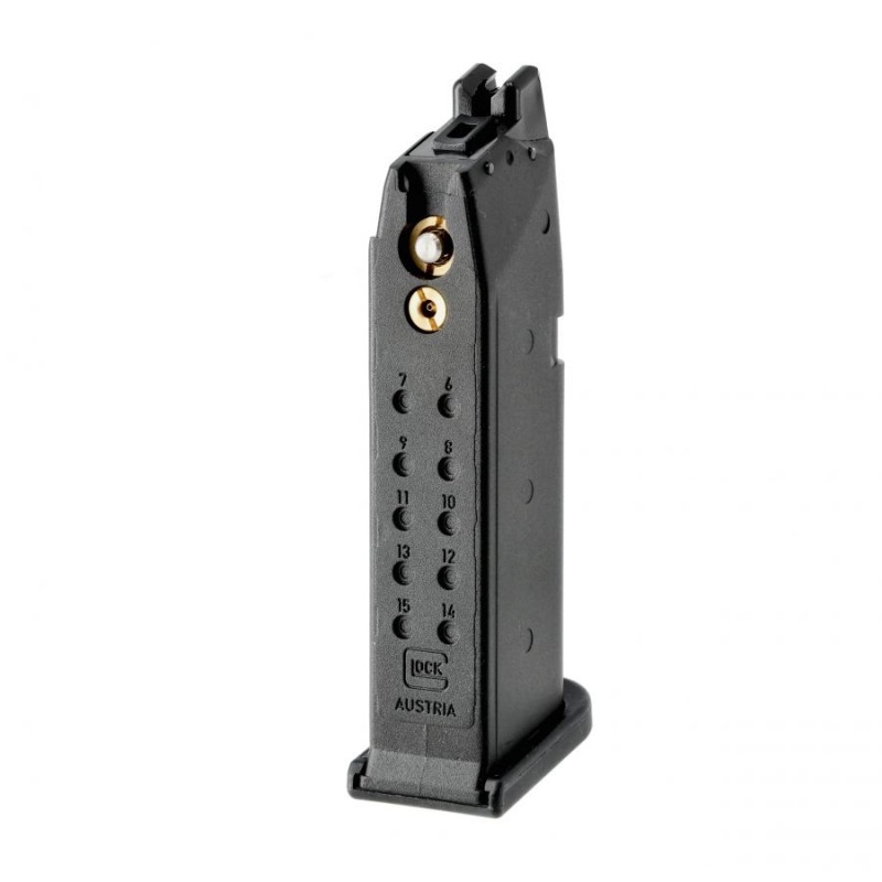 Magazynek o pojemności 19 kulek 6 mm, dedykowany do repliki asg Glock 19 gen 5 z systemem gas blow-back.