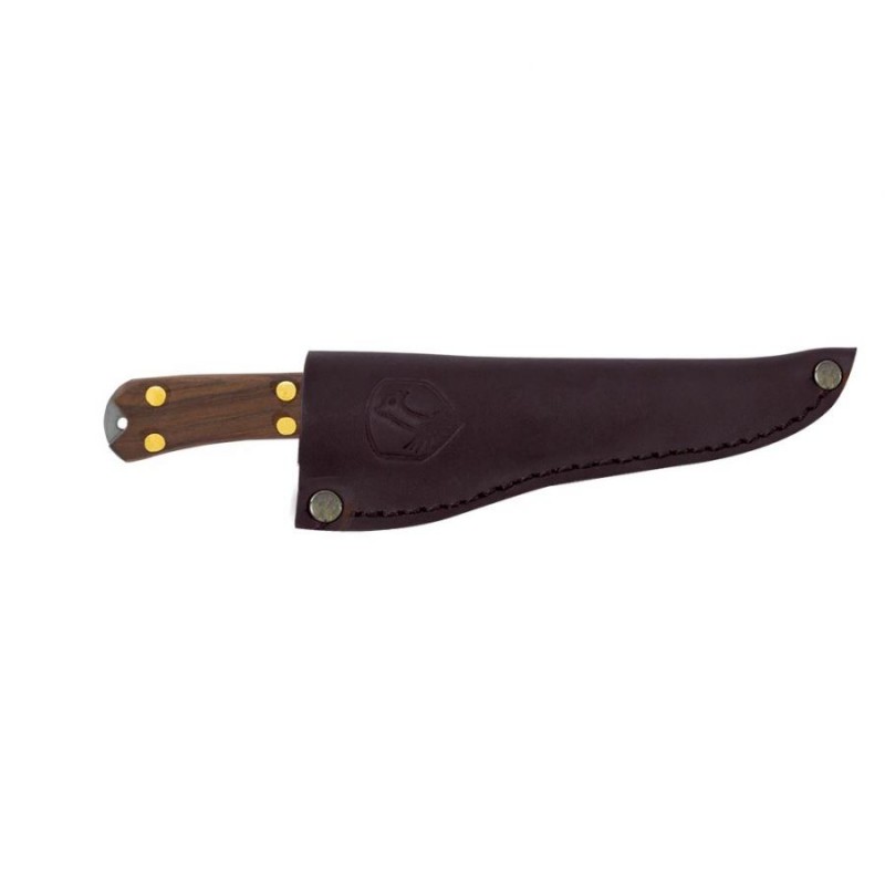 Okładziny rękojeści wykonane są z orzecha, która jest nie tylko wytrzymałym, ale także wyjątkowo estetycznym gatunkiem drewna. Daje użytkownikowi pewny i komfortowy chwyt, a jednocześnie dodaje nożowi autentycznego charakteru.